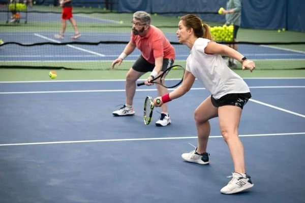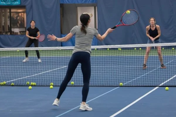 Welcome to our Adult Tennis Programming! Explore our diverse tennis programs tailored for players of all ages and skill levels. We offer small group tennis lessons, beginner programs, mixed doubles, and high-energy cardio tennis sessions for advanced players—perfect for a full-body, calorie-burning workout.